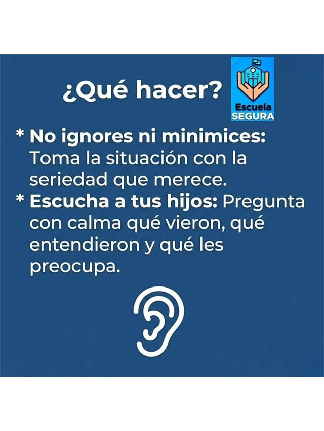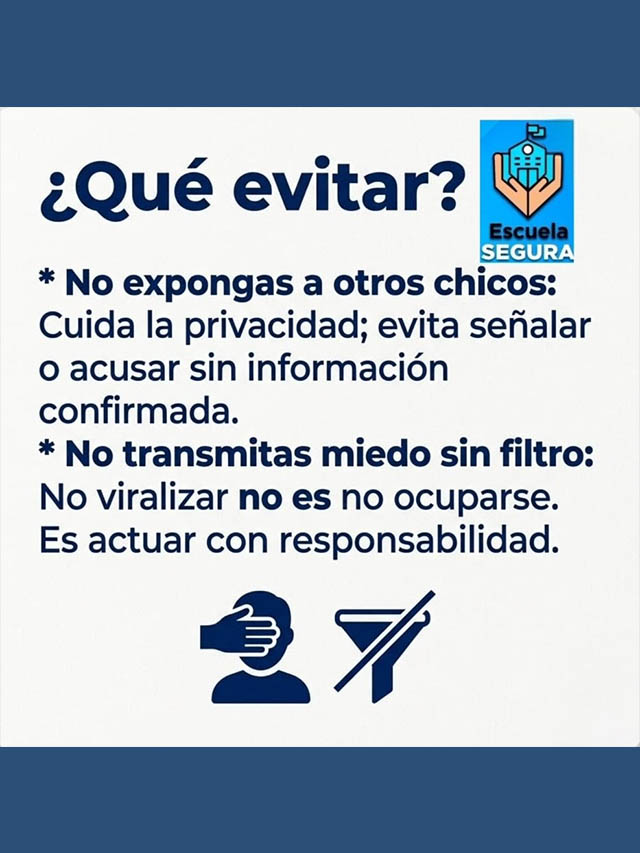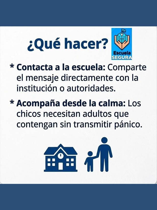 La clave es REPORTAR, NO VIRALIZAR. Hablar con nuestros hijos desde la calma, escucharlos sin transmitirles angustia y canalizar la información directamente con las instituciones educativas.