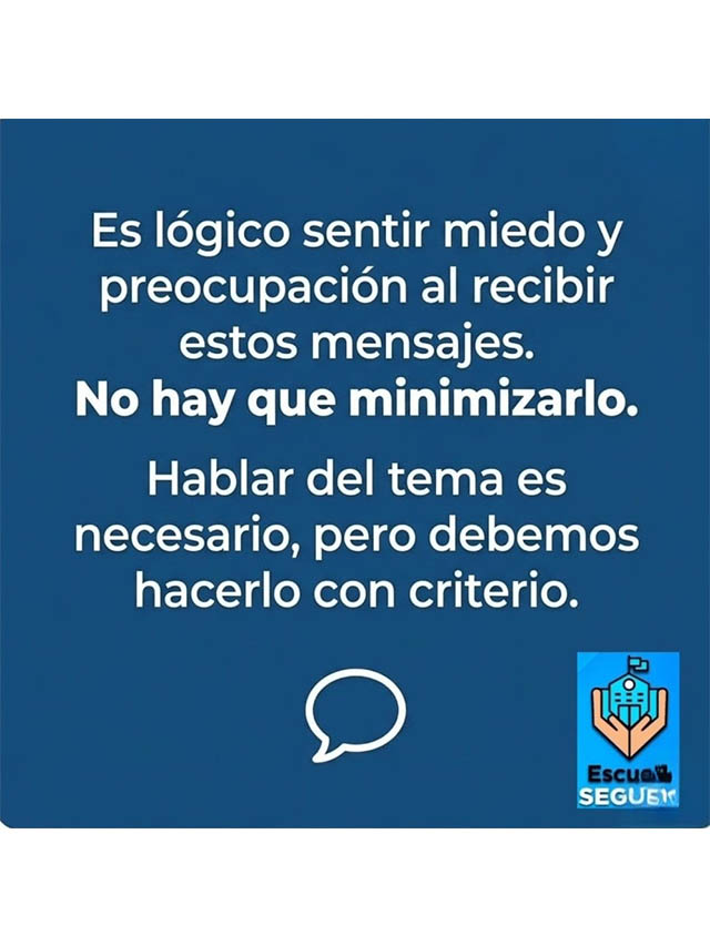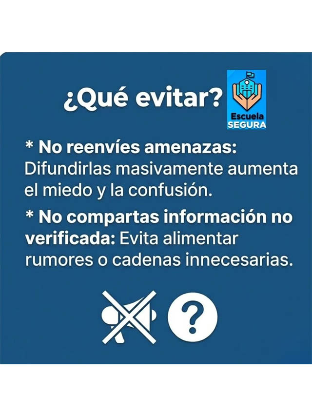En los últimos días, muchas comunidades escolares han estado en alerta por la circulación de mensajes y capturas con amenazas. Es normal sentir miedo, preocupación e incluso la urgencia de avisar a otros. Sin embargo, la forma en que reaccionamos como adultos marca la diferencia entre protección y caos.
