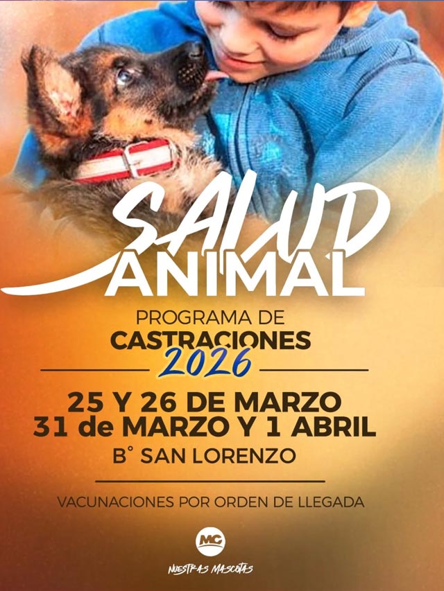 El municipio de Montecarlo llevará adelante una nueva etapa del Programa de Castraciones 2026, con el objetivo de fortalecer el cuidado responsable de mascotas y promover la salud animal como parte fundamental del bienestar comunitario. Las jornadas se desarrollarán en el barrio San Lorenzo, alcanzando a vecinos de la zona con servicios gratuitos.