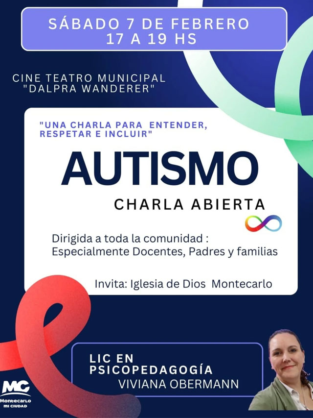 MISIONES.UNO – En Montecarlo, este sábado 7 de febrero se realizará en el Cine Teatro Municipal “Dalprá Wanderer” una charla abierta titulada “Autismo: una charla para entender, respetar e incluir”.