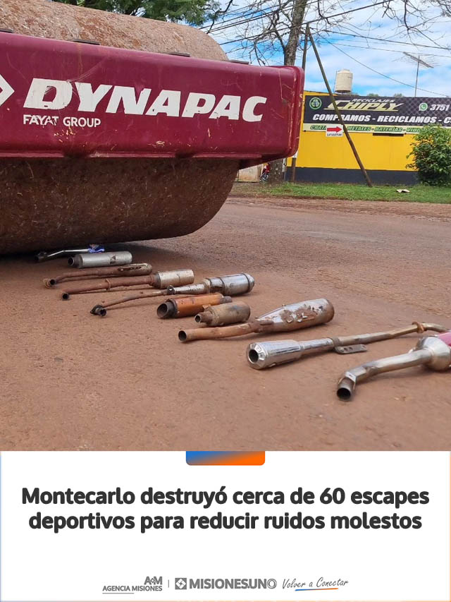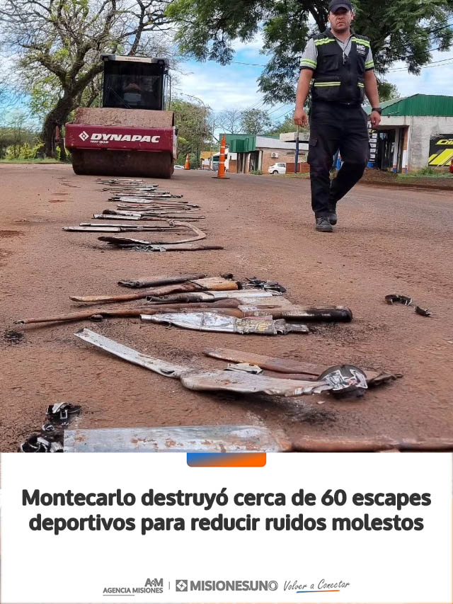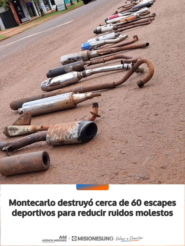 Este martes por la mañana, la Municipalidad de Montecarlo realizó la destrucción de aproximadamente 60 escapes deportivos que habían sido retenidos en distintos controles de tránsito desarrollados en la localidad.