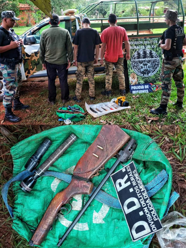 Al recuperar el bulto descartado, los uniformados constataron que contenía un rifle calibre .22 de fabricación casera, además de otros elementos presuntamente utilizados para actividades ilícitas en áreas rurales.