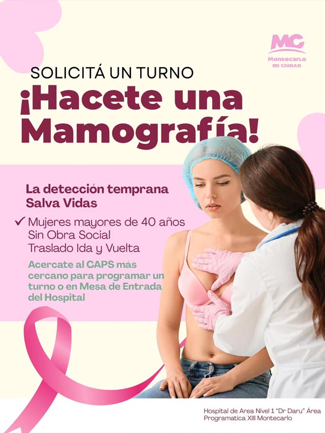 AGENCIA MISIONES.UNO | En Montecarlo invitan a las mujeres a realizarse estudios de mamografía y Papanicolaou (PAP), controles fundamentales para la detección temprana de enfermedades y el cuidado de la salud.