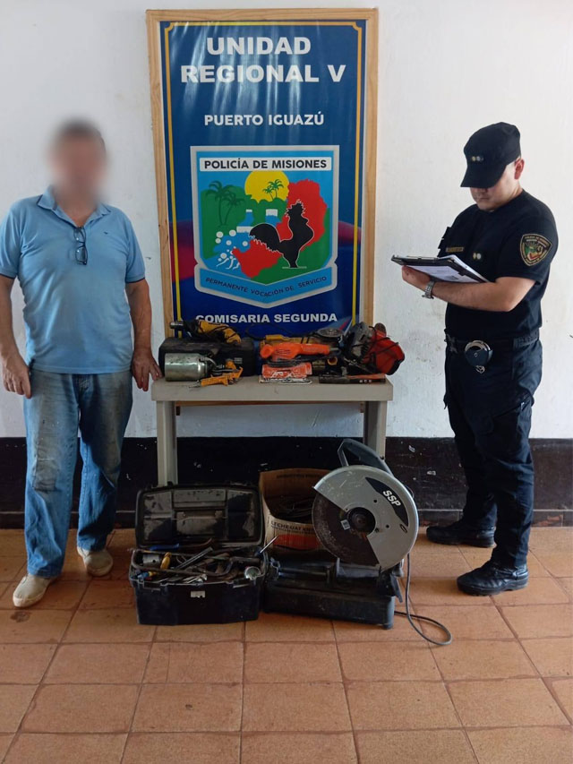 MISIONES.UNO – En Puerto Iguazú, efectivos de la División Comando Radioeléctrico URV recuperaron herramientas robadas de un taller y detuvieron a un joven de 26 años durante la madrugada de este lunes. El propietario se presentó horas más tarde en la comisaría para denunciar el hecho y se encontró con que los elementos ya habían sido restituidos.